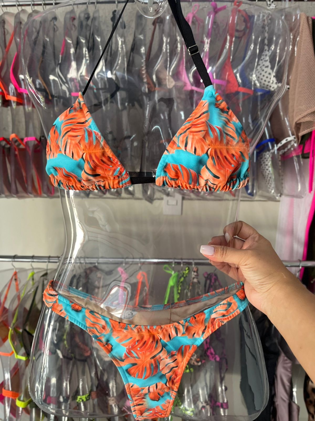 Biquíni para bronzeamento Top: imita fita. Tiras pescoço e costa 10mm com ajustador. Calcinha: modelo asa delta